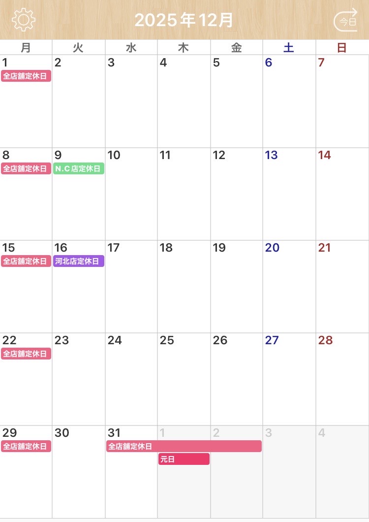 1日(月)・8日(月)・9日(火)・15日(月)・22日(月)・29日(月)